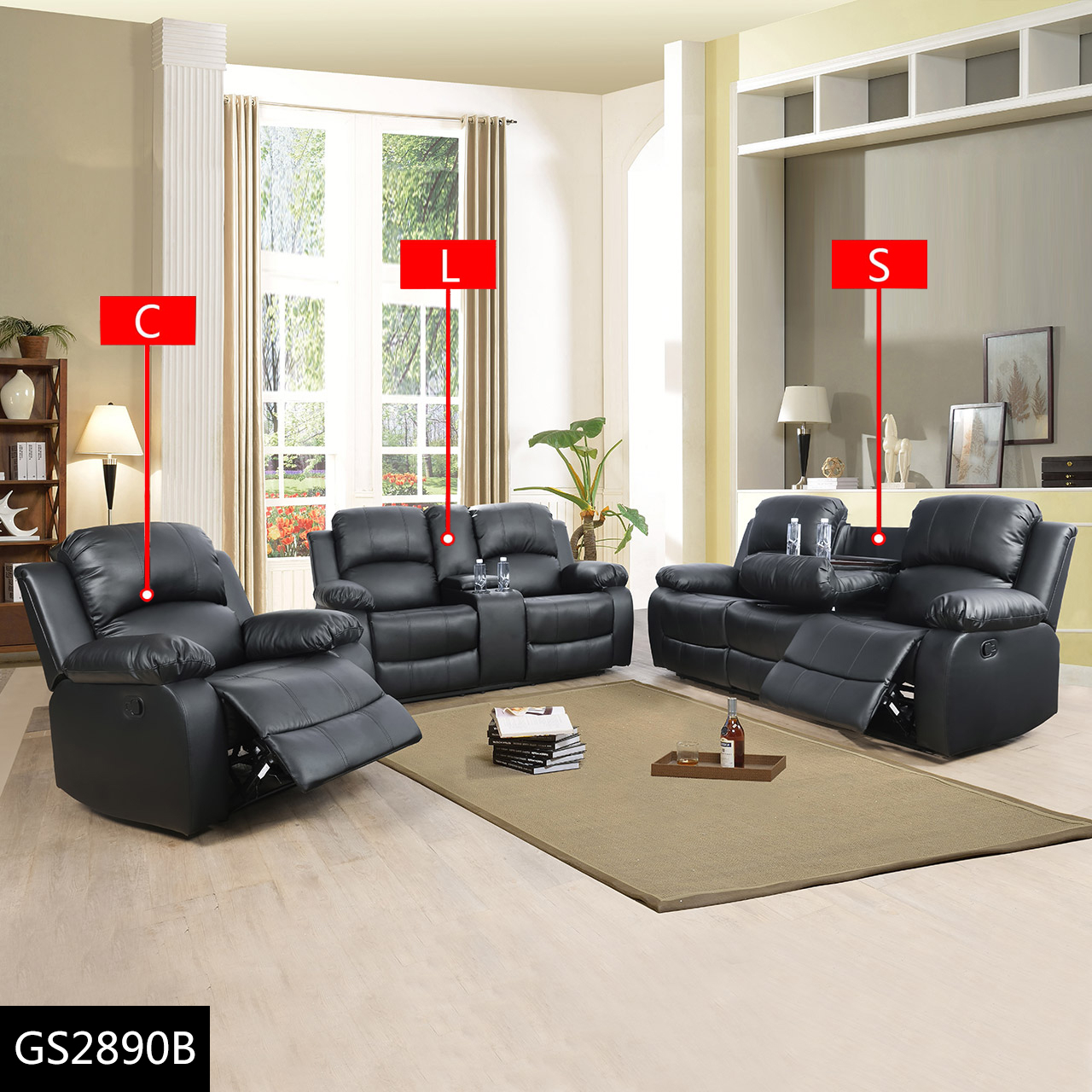 黑色半PU和PVC双人沙发 客厅沙发 L